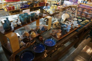 志々陶で作ってきた作品新旧含め展示販売しています。海や江井ヶ島を意識して作った江井ヶ島シリーズや、かわいい小物もあります。お土産にどうぞ。